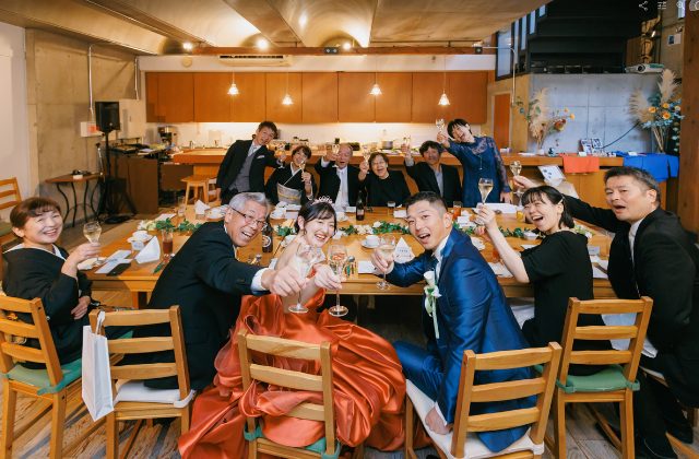 同じテーブルで食事を楽しんだり、思い出話に花を咲かせたりと、結婚式というより「特別な会食」に近い温度感で過ごせるのが魅力です。